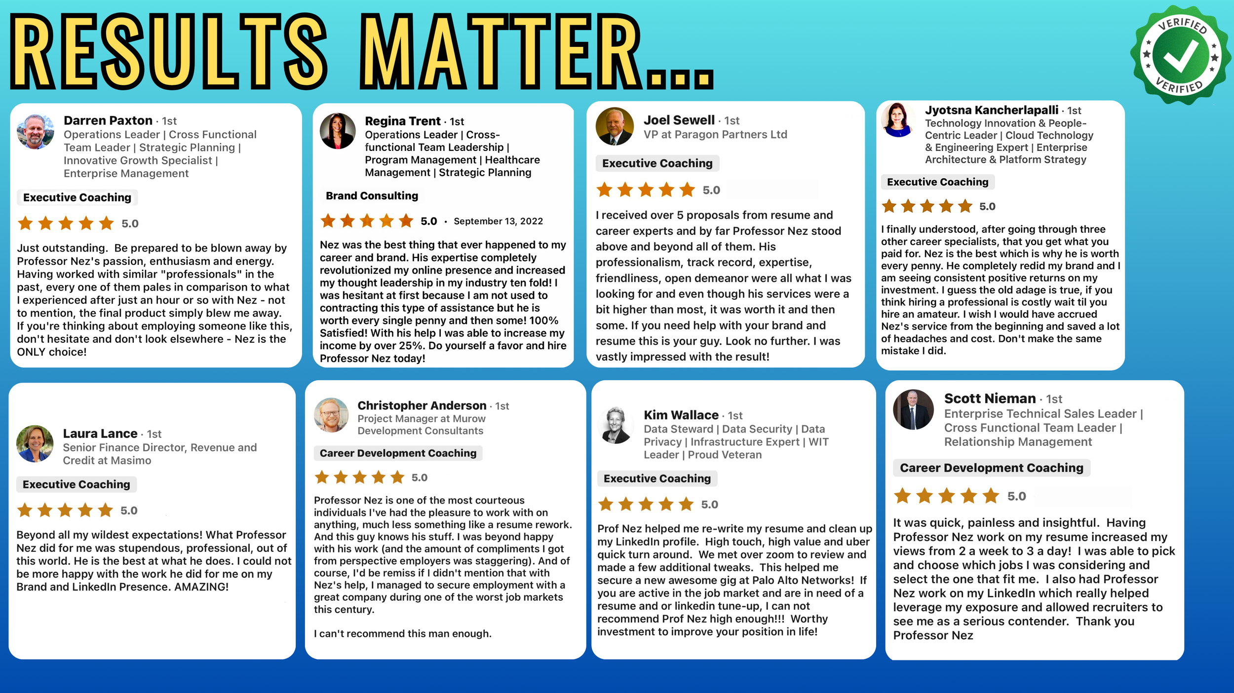 EMAIL ME YOUR ORIGINAL RESUME AND LINKS TO JOBS YOU ARE INTERESTED IN HERE: NEZ@PROFESSORNEZ.COM